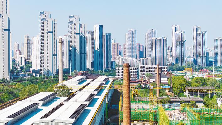 2025年10月22日,汉阳铁厂旧址上的烟囱已被现代化高楼环绕。