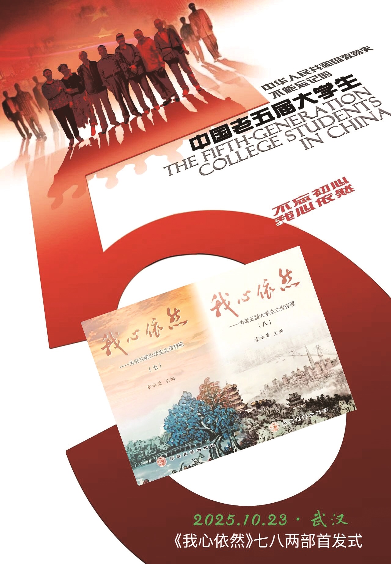 2018年至2023年,华夏文艺出版社先后出版纪实文学丛书《我心依然》六部,收录200多位老五届学子撰写的300多篇文章,共计200多万字。书中的每一篇文章,或回忆往事,或钩沉史迹,或抒发家国情怀,在海内外广为流传,产生了积极的社会影响,后又被北京大学中华人民共和国史研究中心收藏,用于专家学者研究与学术展览。