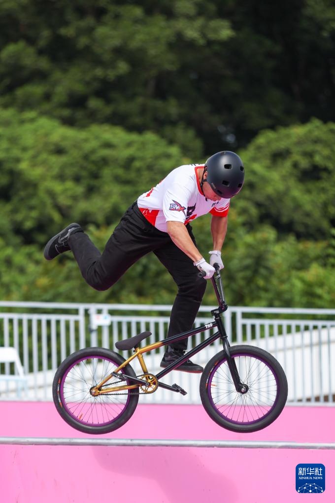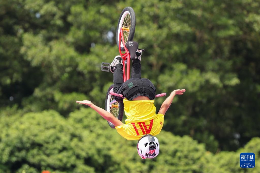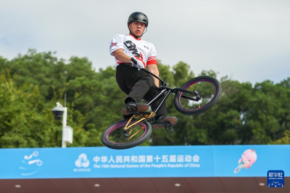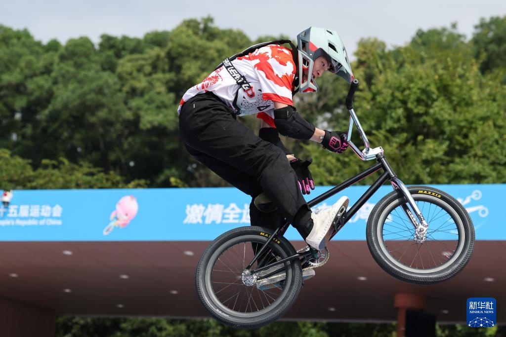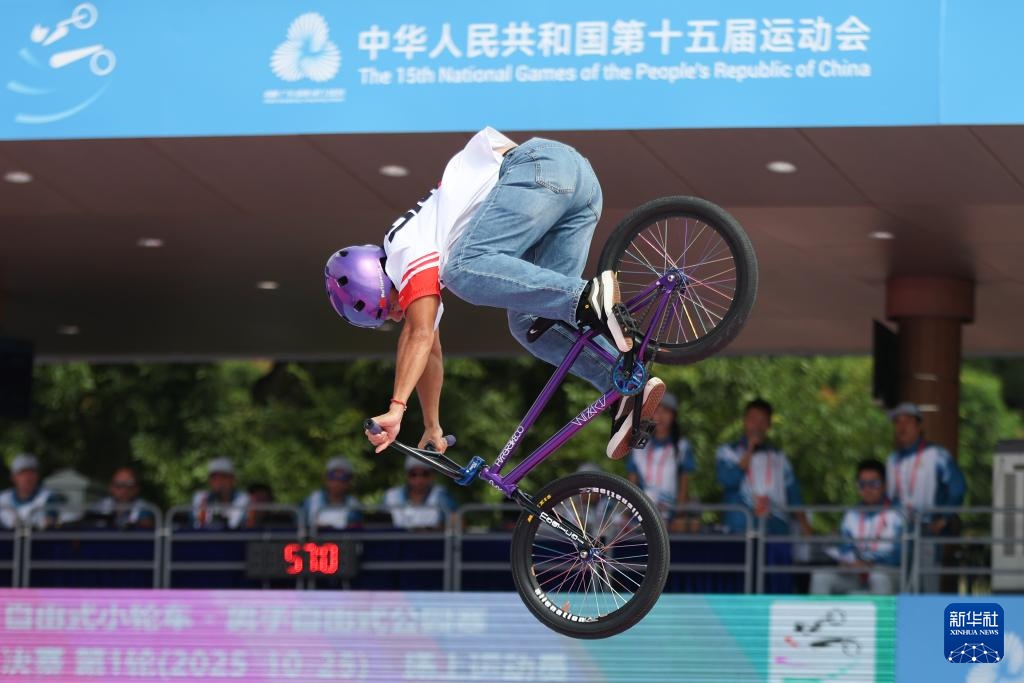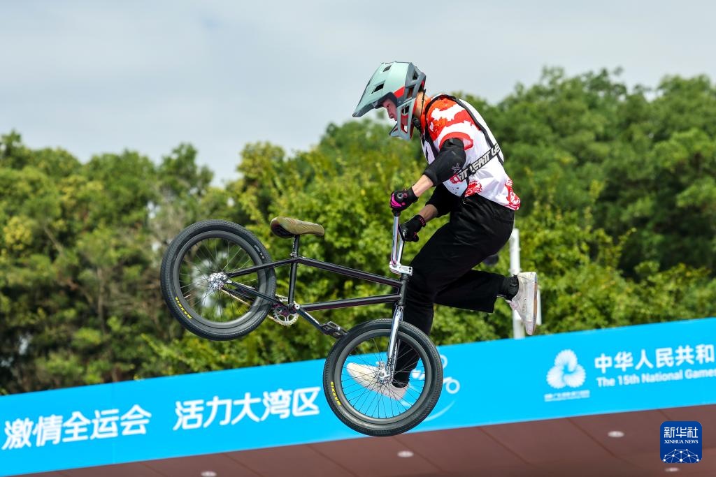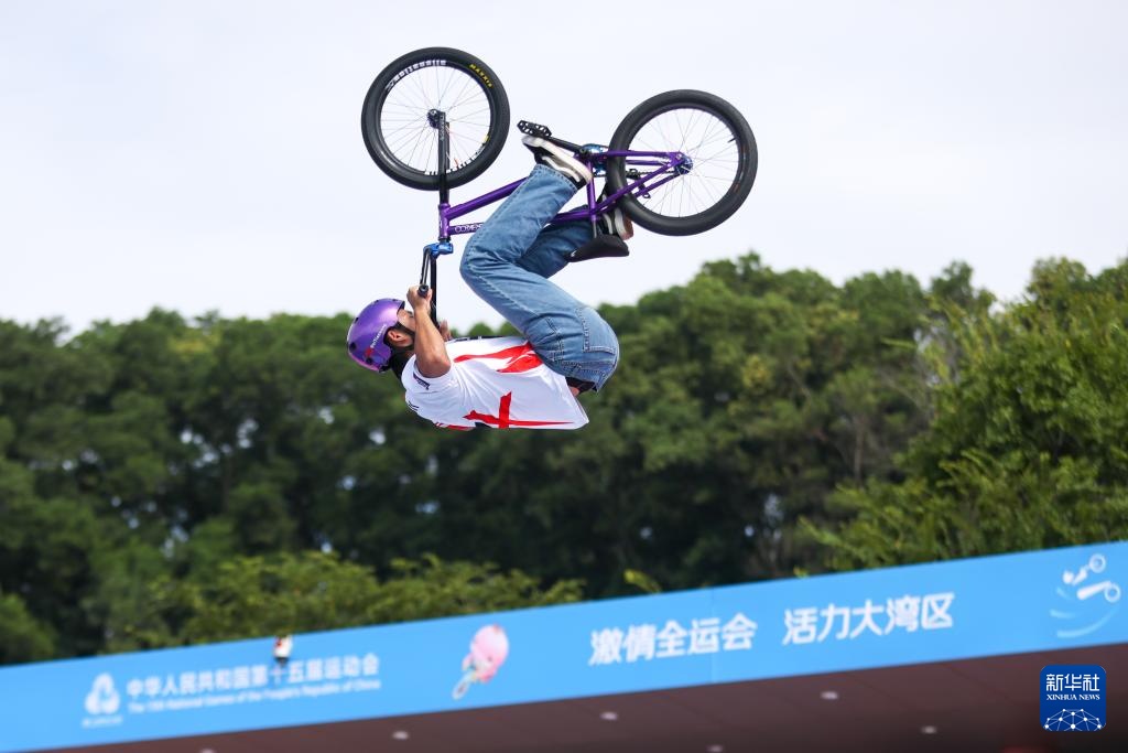 当日,第十五届全国运动会自由式小轮车男子公园赛决赛在深圳光明区虹桥公园举行。