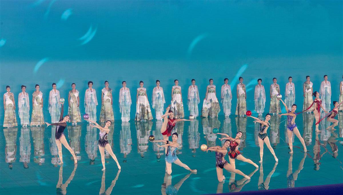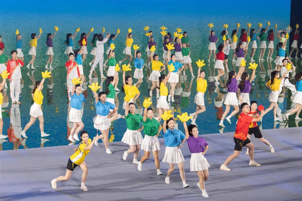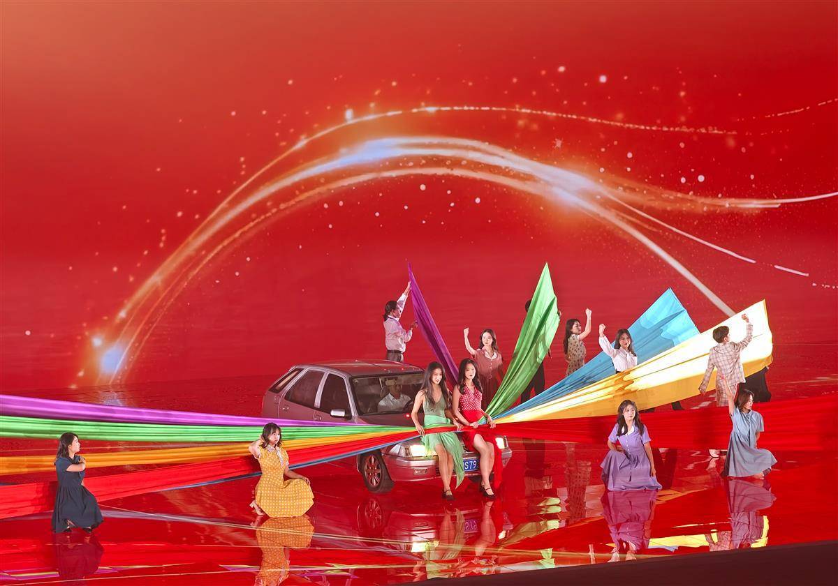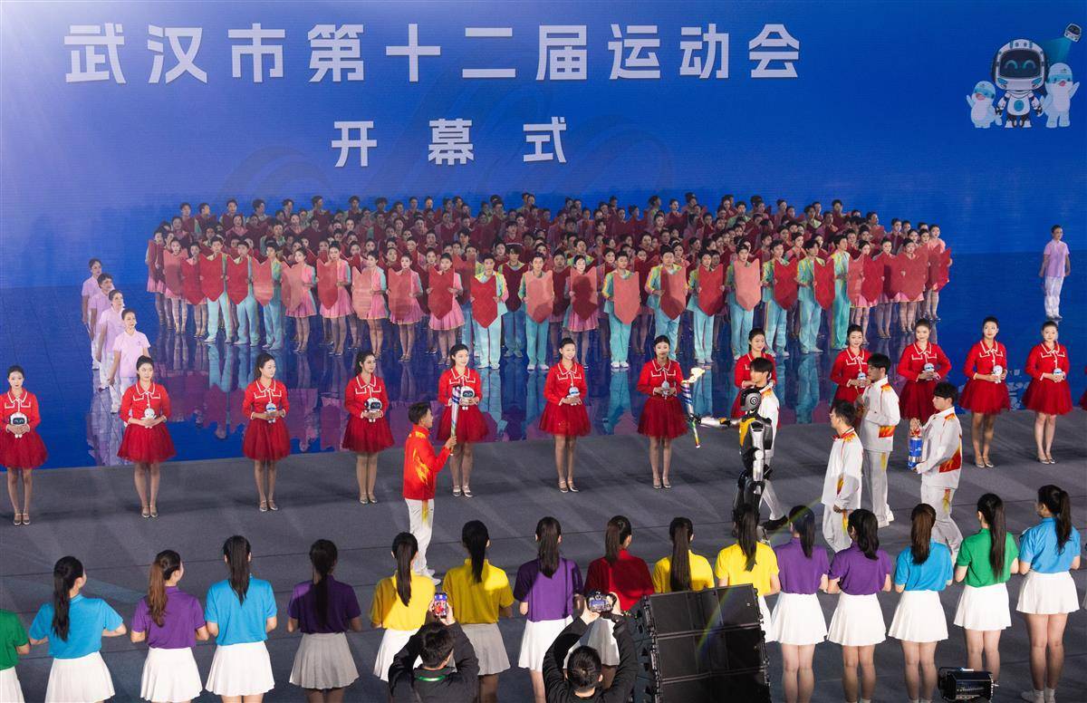 10月25日晚,武汉市第十二届运动会开幕式在位于武汉经开区的武汉体育中心举行。女足运动员王霜点燃主火炬。开幕式文艺表演《向未来而生》精彩上演。多个场景串联起武汉经开区30余载波澜壮阔的发展历程,从一辆车到一座城,30年前武汉经开区下线的第一辆富康轿车,和如今的全系岚图追光L、free+、知音,都开上了舞台,人、车共舞,一片欢乐的海洋。(湖北日报全媒记者 柯皓 摄)