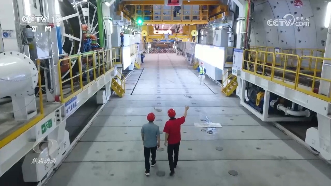 中国铁建重工集团掘进机事业部副总经理张帅坤:“直径越大,它的装配和制造精度要求反而更高,比如说我们盾构机核心部件主驱动装备的精度都是以丝级计算的,一丝就相当于我们头发丝直径的1/6。”