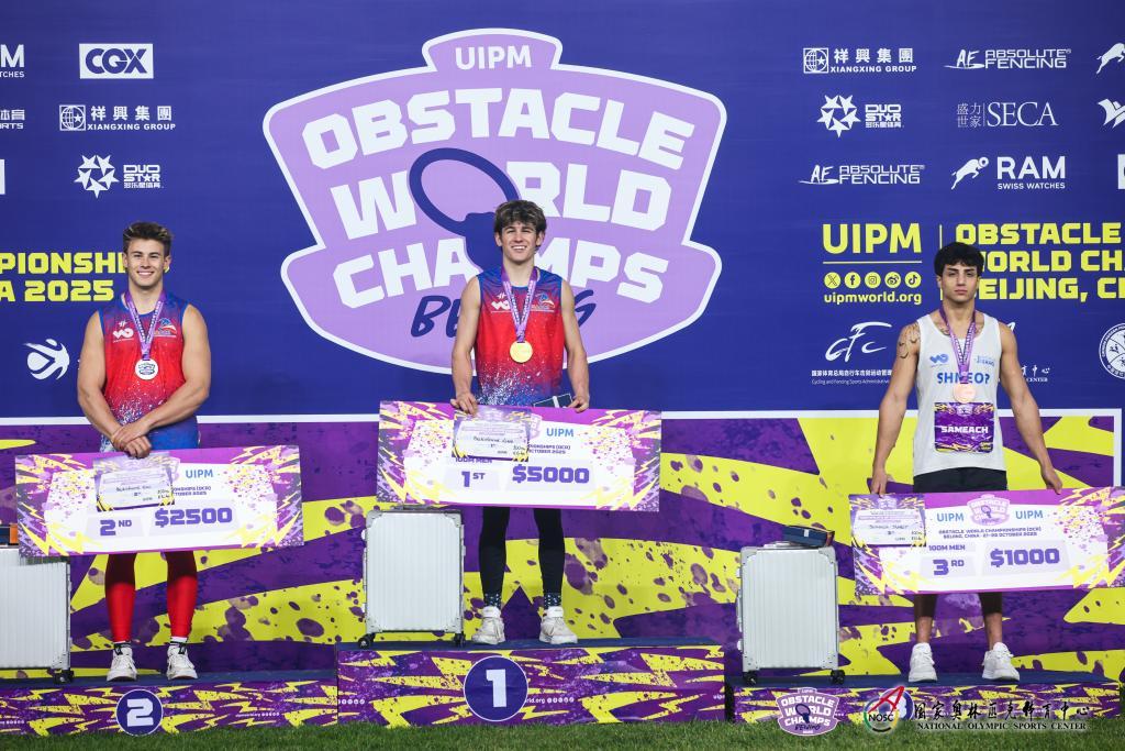 新华社北京10月25日电(记者杨博毅)2025国际现代五项联盟(UIPM)障碍跑世界锦标赛25日决出3000米与100米项目冠军。在100米项目中,美国贝克施特兰德兄弟包揽精英组冠、亚军,中国选手何旭获得成年组冠军。