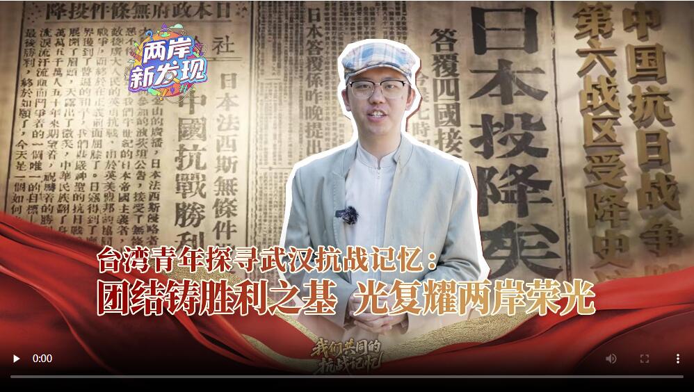 全民族抗战初期,武汉一度成为全国抗战中心。在武汉创业的“90后”台湾青年庄益昌将带我们探寻这座英雄城市的抗战记忆。我们将一起步入武汉博物馆、八路军武汉办事处旧址纪念馆,重温中华民族那段艰苦卓绝、气壮山河的峥嵘岁月。在武汉中山公园受降堂,一幅幅老照片和一份份文献记录着抗日战争的伟大胜利 ,也定格了台湾摆脱殖民统治、重回祖国怀抱的永恒瞬间。抗战胜利是两岸同胞共同的荣耀。