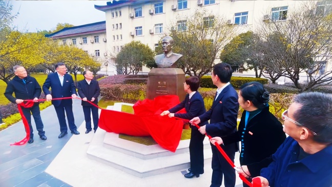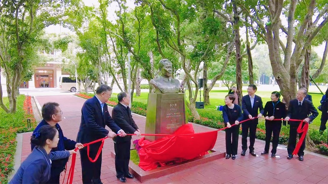 10月25日,华中科技大学举行查谦、朱九思先生半身铜雕塑揭幕仪式。(记者余军 摄)