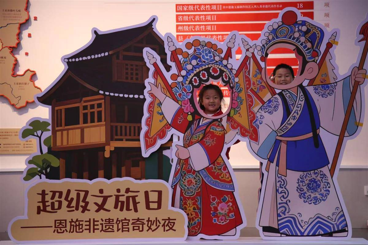 恩施州非遗馆超级文旅日活动,让孩子们接触传统戏曲。(恩施州非遗馆供图)