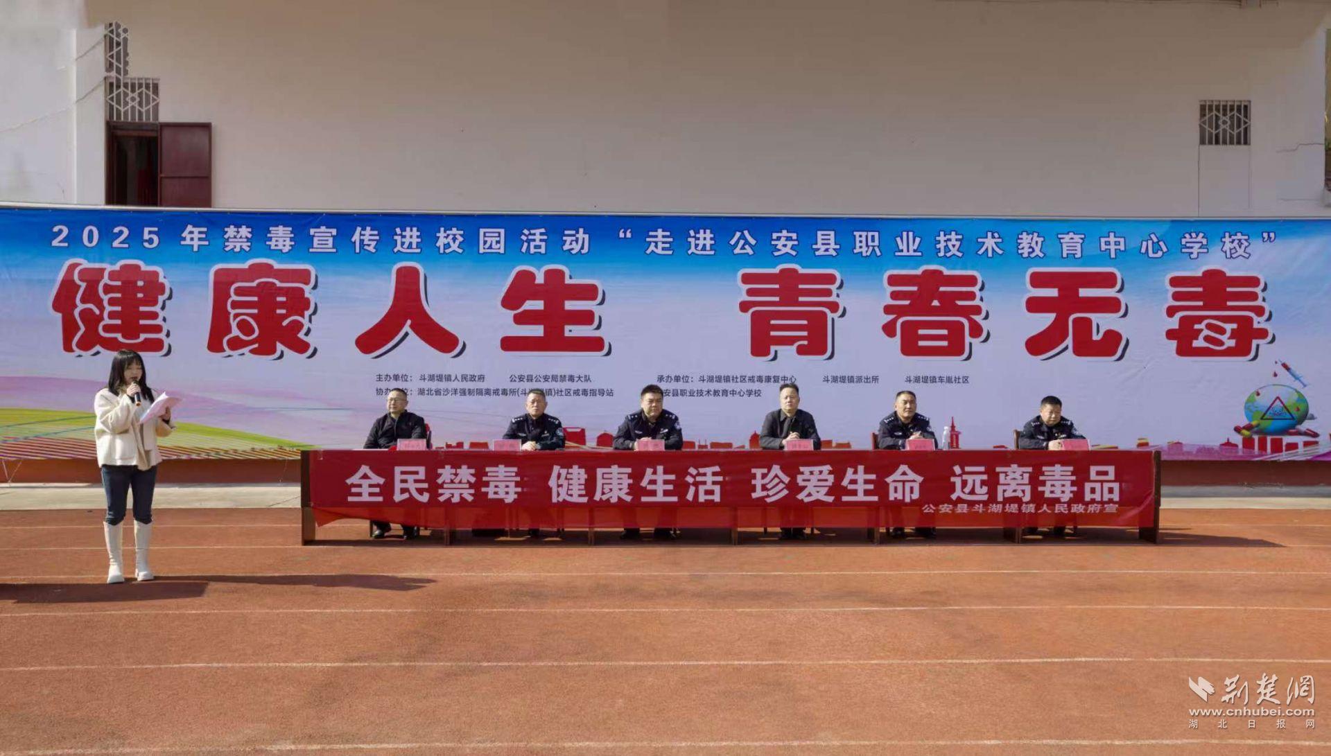 荆楚网(湖北日报网)讯(通讯员 杜悉妮、马安元)金秋十月,一场以“健康人生 青春无毒”为主题的禁毒宣传教育活动在公安县职业技术教育中心学校生动展开。此次活动由荆州市公安县斗湖堤镇人民政府、公安县公安局禁毒大队、湖北省沙洋强制隔离戒毒所联合主办,通过沉浸式宣讲、案例剖析与实物展示,为青少年筑牢禁毒防诈的安全防线。