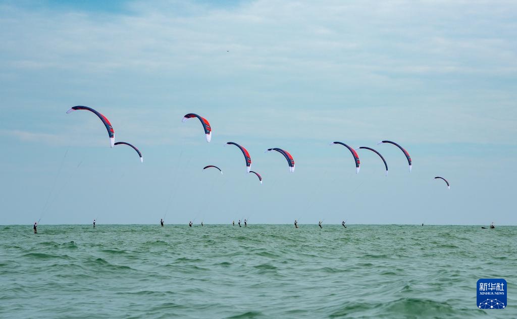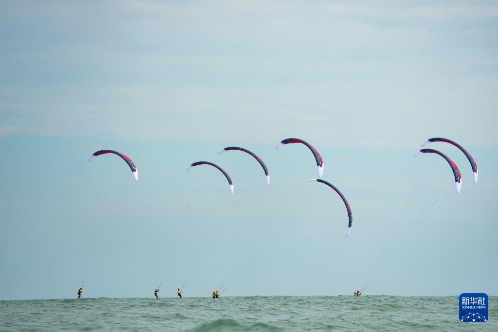 10月25日,参赛选手在女子水翼风筝板级比赛中。