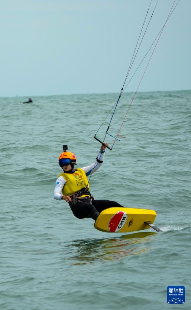 10月25日,上海队选手李婉在女子水翼风筝板级比赛中。
