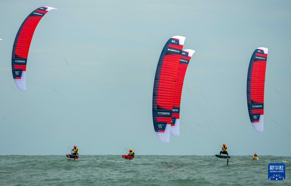 10月25日,参赛选手在水翼风筝板级比赛中。