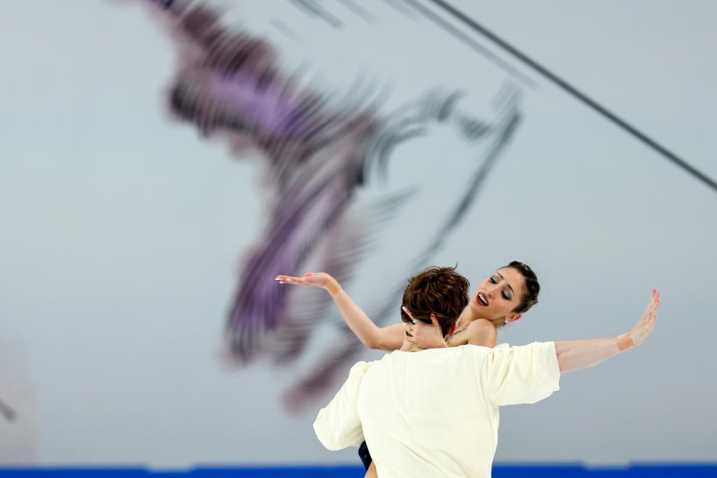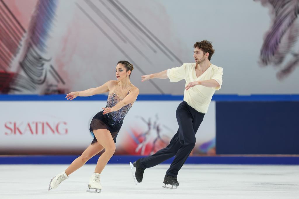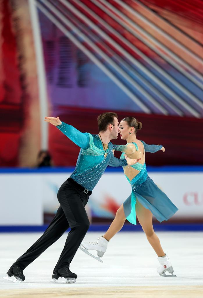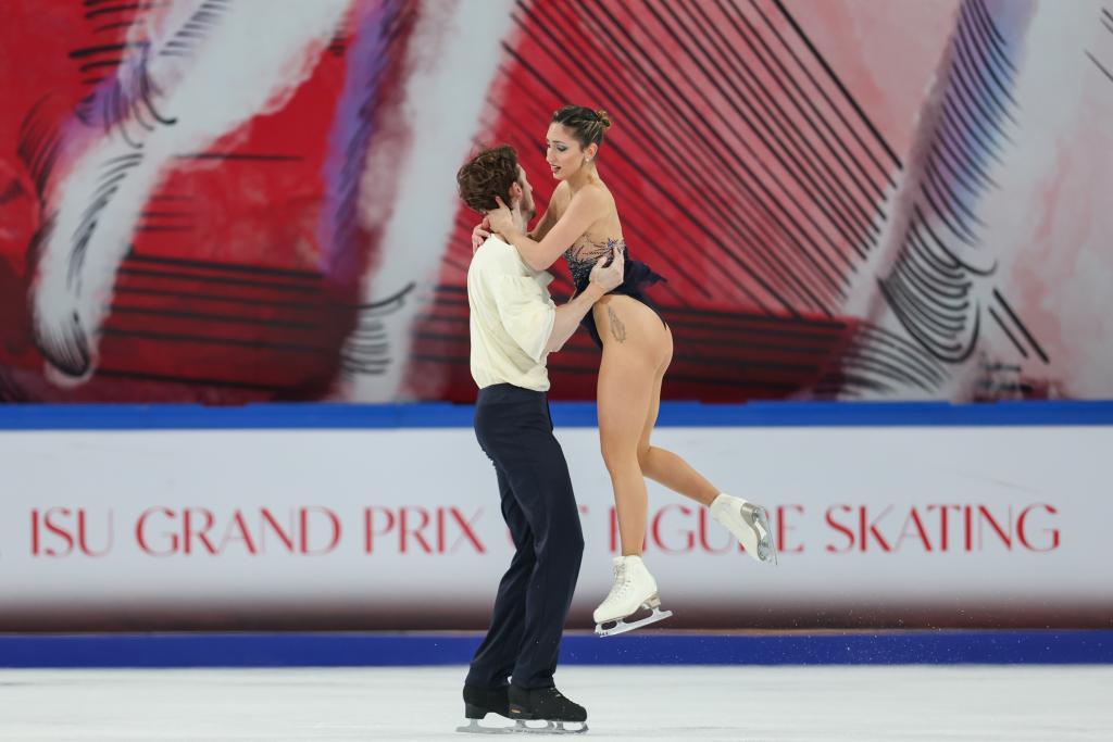 10月25日,意大利组合萨拉·孔蒂(右)/尼科洛·马西在自由滑比赛中。最终,他们夺得双人滑比赛亚军。