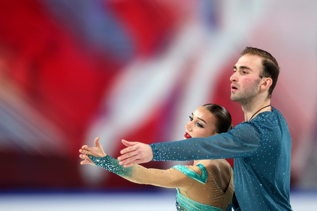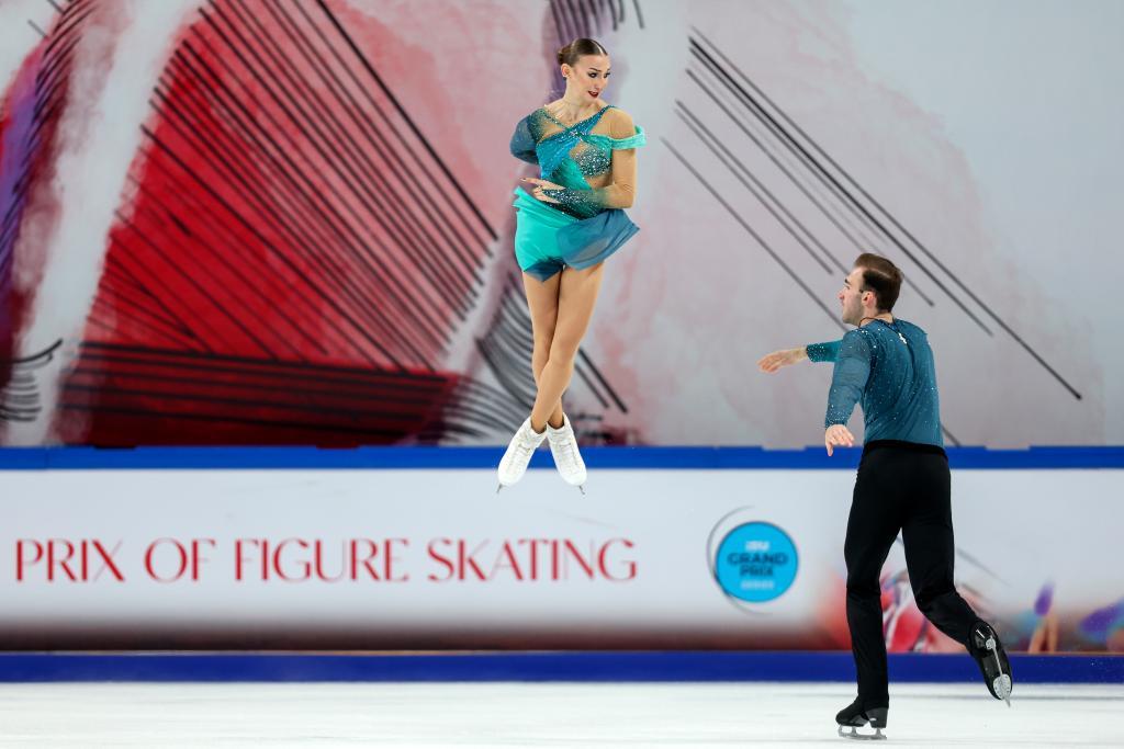 10月25日,格鲁吉亚组合阿纳斯塔西娅·梅特尔基娜(左)/卢卡·别鲁拉瓦在自由滑比赛中。最终,他们夺得双人滑比赛冠军。