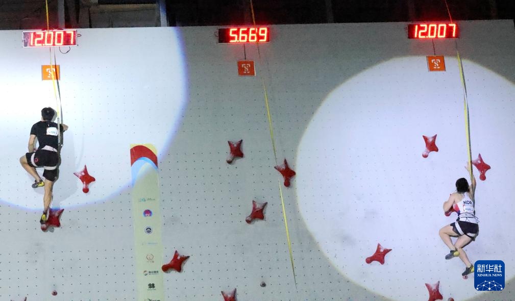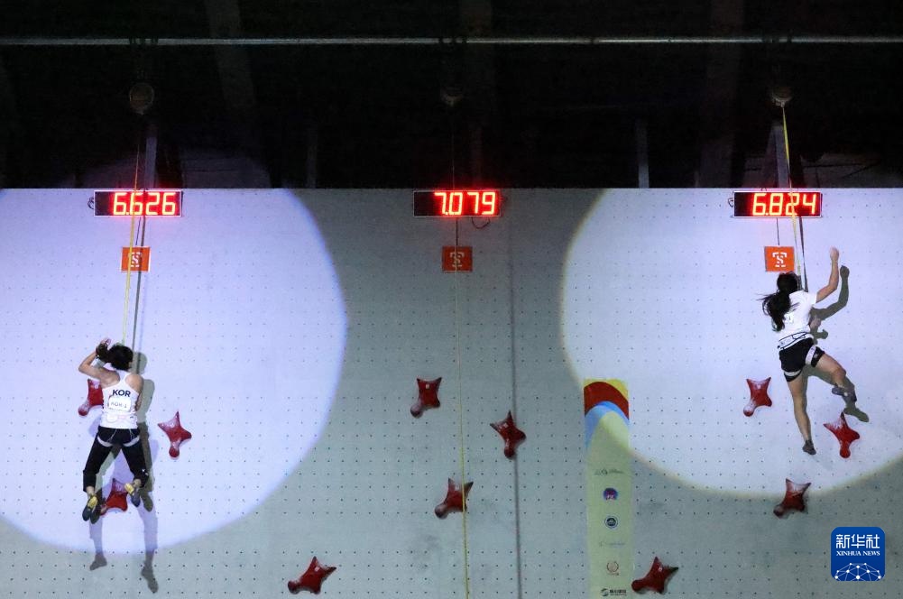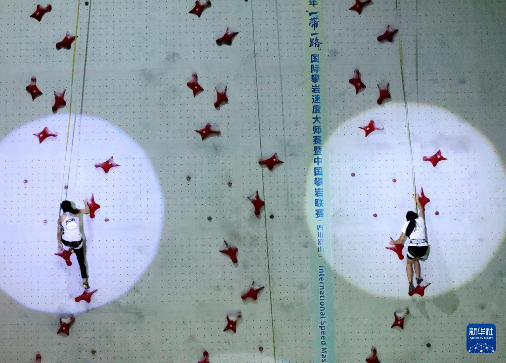 当日,2025年“一带一路”国际攀岩速度大师赛暨中国攀岩联赛(四川眉山站)混合接力赛在四川省眉山市举行。