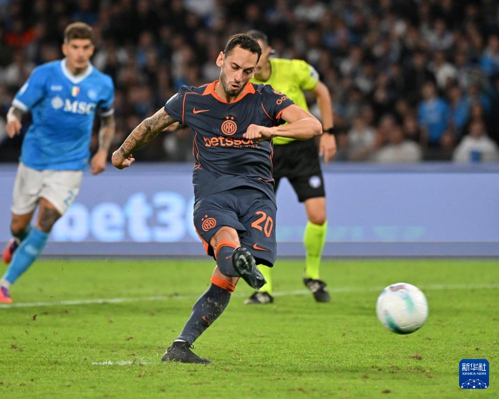 10月25日,国际米兰队球员恰尔汗奥卢射入点球。