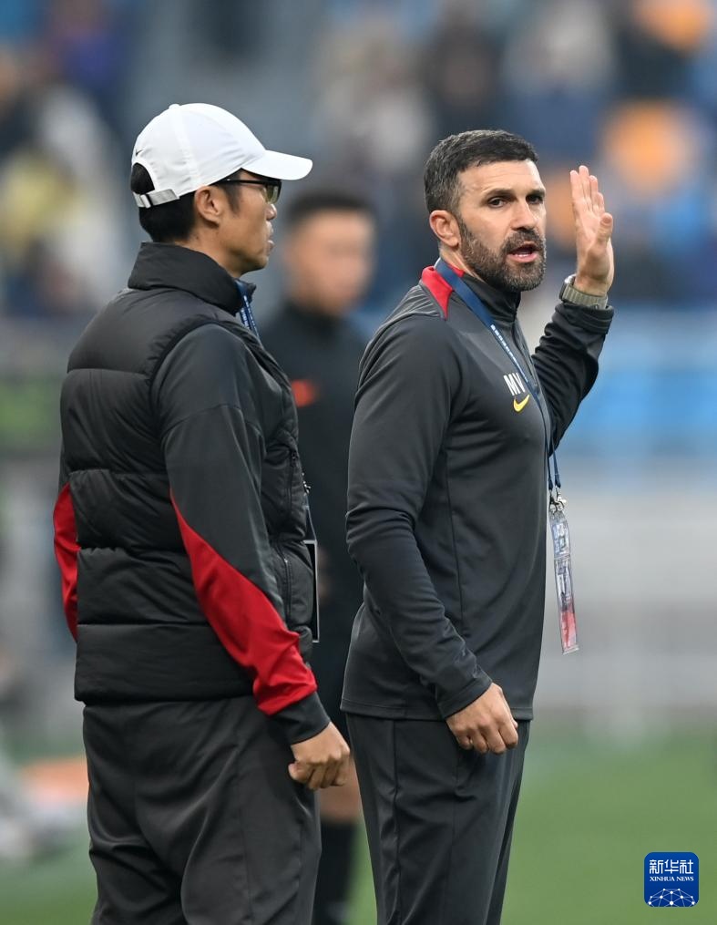 10月25日,长春亚泰队代理主教练毛里西奥(右)在场边指挥。
