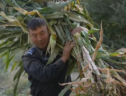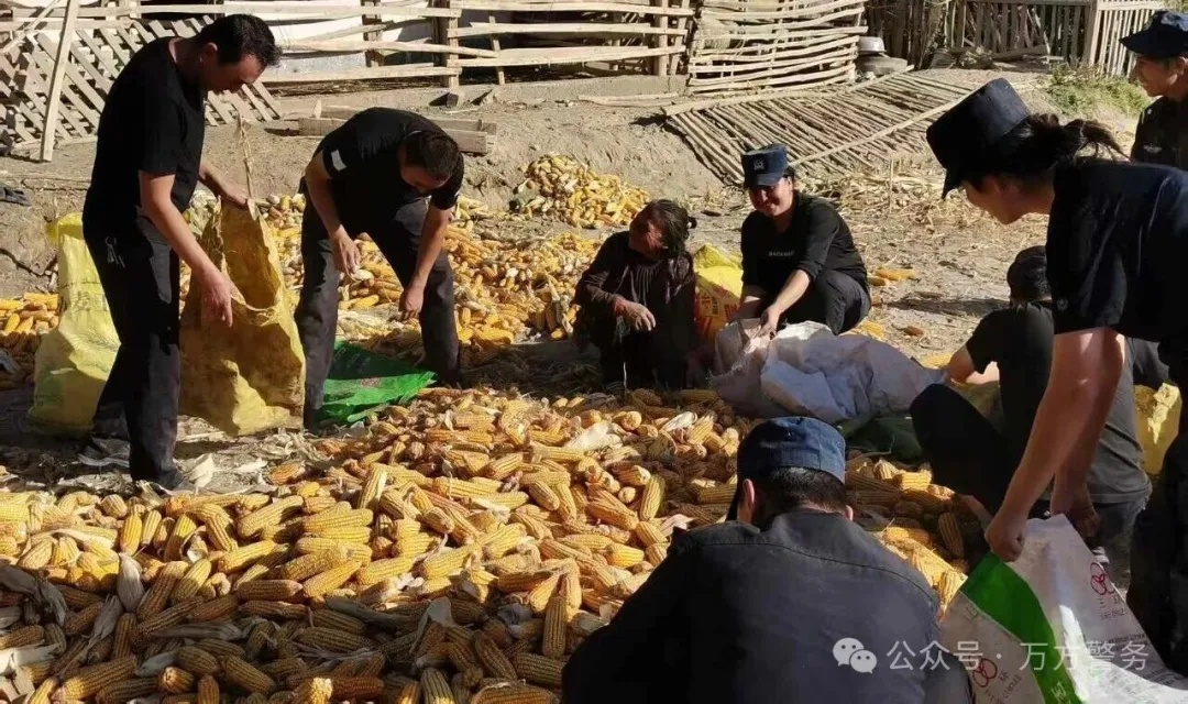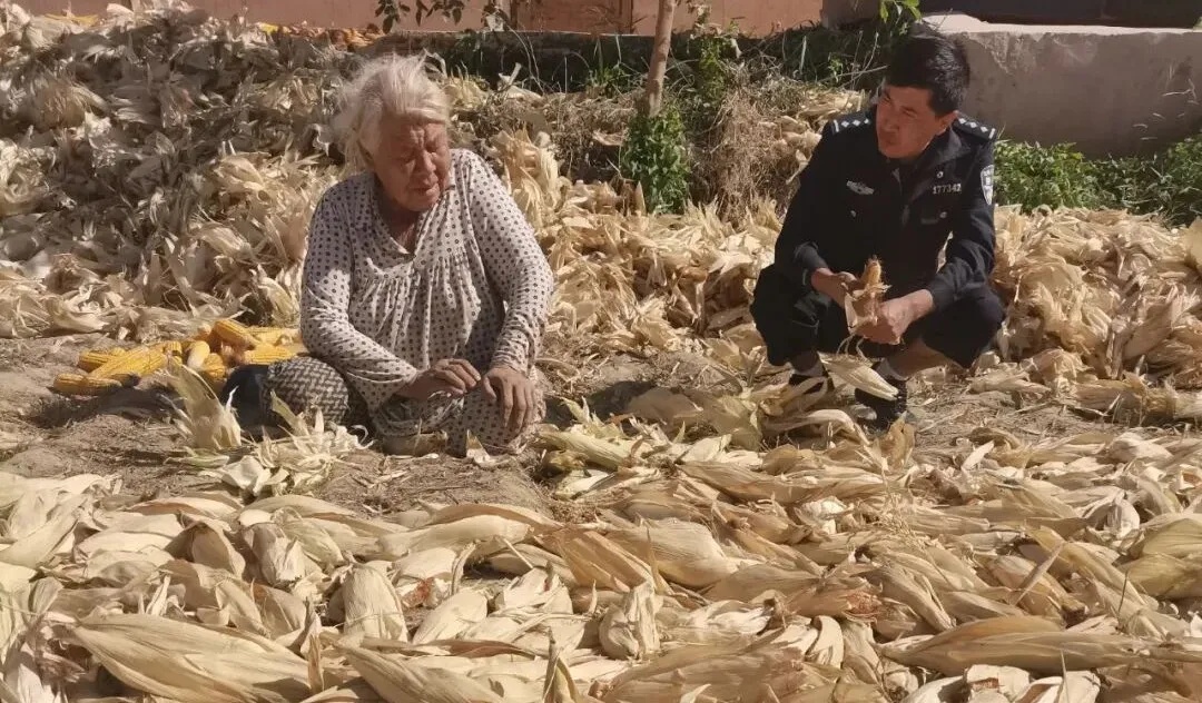 辅警帮学生母亲祖来罕·艾合买提搬运玉米。