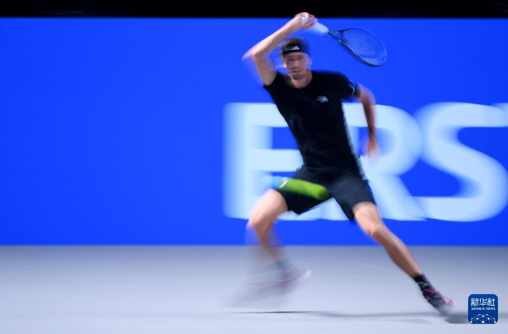 10月26日,德国选手兹韦列夫在比赛中回球。