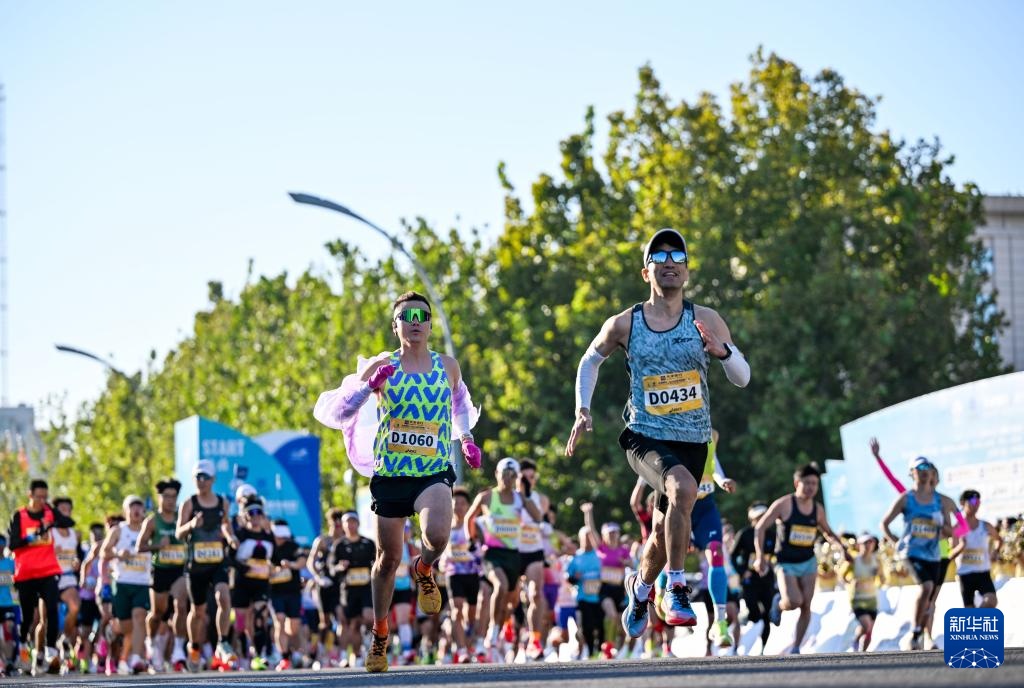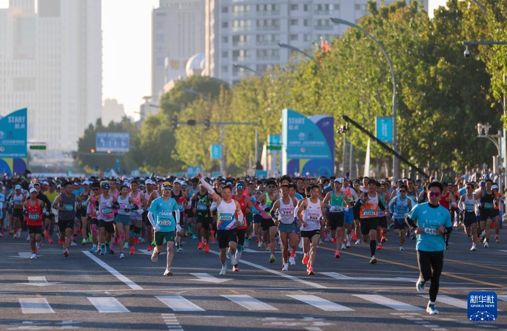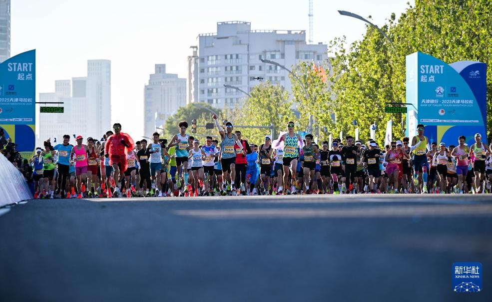 当日,2025天津马拉松鸣枪开跑。赛事吸引了约三万名跑者参加。