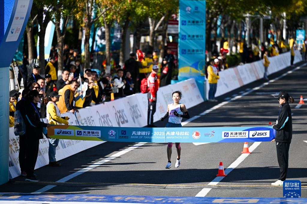 10月26日,参赛选手李芷萱在比赛中跑向终点。最终,她以2小时29分26秒的成绩获得女子组冠军。