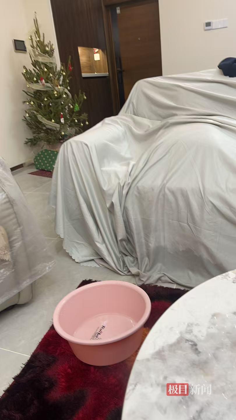 2024年2月4日晚,杨先生从外地返回武汉,本想入住新房过年,开门瞬间,他被眼前的一幕惊呆了:他的新家成了水帘洞,屋顶滴水,全屋家具、地板均被积水浸泡。他当即联系物业,工作人员现场查看后表示,杨先生家中被泡水一事,他们将负责维修,但是当时已经快过年了,他们那边没工人。其间,杨先生一家因无房居住多次交涉,均未得到解决,直至2024年元宵节过后,物业才安排人员进场维修。