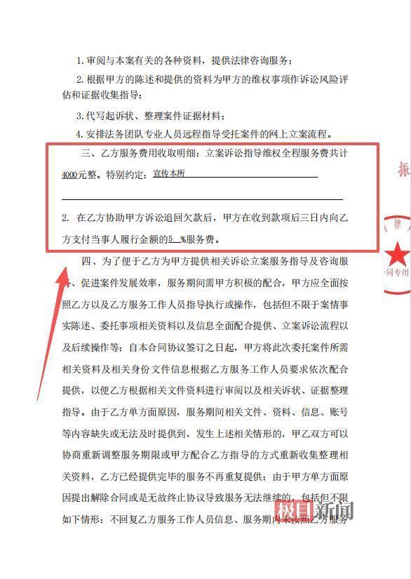 然而,支付4000元后,刘女士收到一份委托备案受理登记的消息后,反而被要求再缴纳5万元费用,这让她难以接受,“欠款还没着落,又要追加高额费用,这不符合当初的约定。”为维护自身权益,刘女士拨通了极目新闻热线求助。