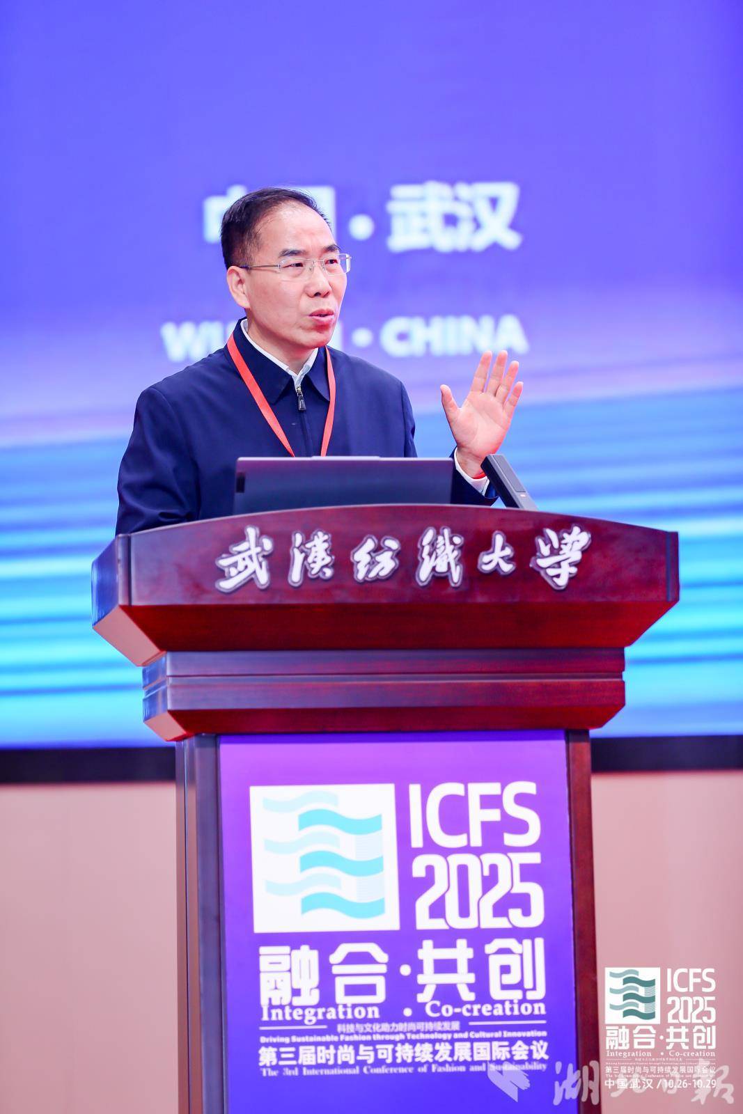 中国工程院院士、武汉纺织大学党委书记徐卫林教授在讲话中聚焦纺织服装产业的时尚与可持续发展。