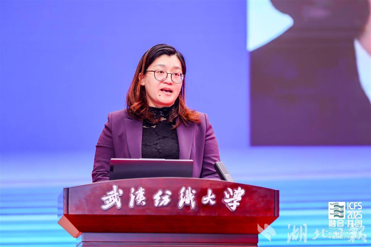 “从‘嫦娥’系列月面闪耀的国旗,到世界首创的玄武岩纤维‘石头’国旗,这一系列源自纺织学科的航天科技成就,是对‘科技助力可持续’最有力的诠释。”中国纺织服装教育学会秘书长白静秘书长表示,中国作为全球纺织服装产业的重要参与者和贡献者,在推动绿色转型中肩负着不可推卸的责任与使命。她高度肯定了武汉纺大通过获批建设全国重点实验室、构建高水平科研体系为产业提供的坚实支撑,以及服装学院立足“大服装”理念,培养具备前沿视野与社会责任感人才的“纺大经验”,并期待本次会议能凝聚广泛共识,为全球时尚产业贡献更多中国智慧。
