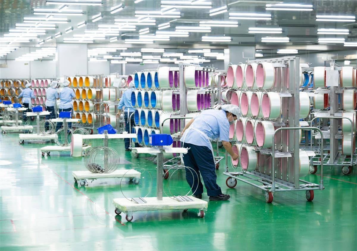 宏和电子AI算力设备高性能玻纤纱生产车间。通讯员汪泽栋摄