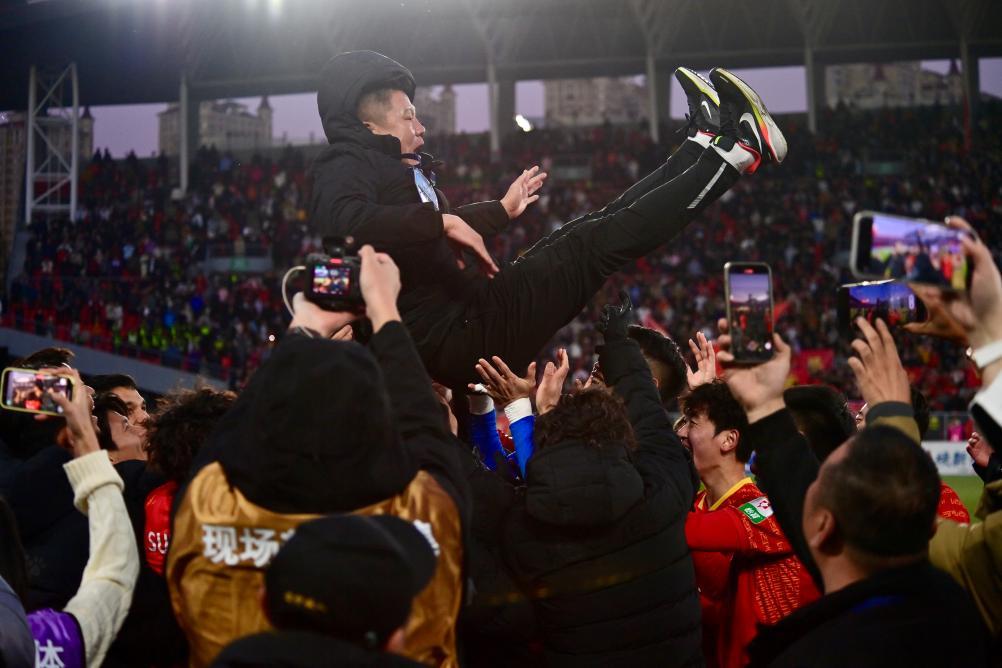 确认结果后,球队主教练李金羽终于松了一口气,“行百里者半九十,不到最后一刻都不能放松”。在他看来,球队冲超成功,稳定的投入、良好的环境和氛围、优秀的球员缺一不可。