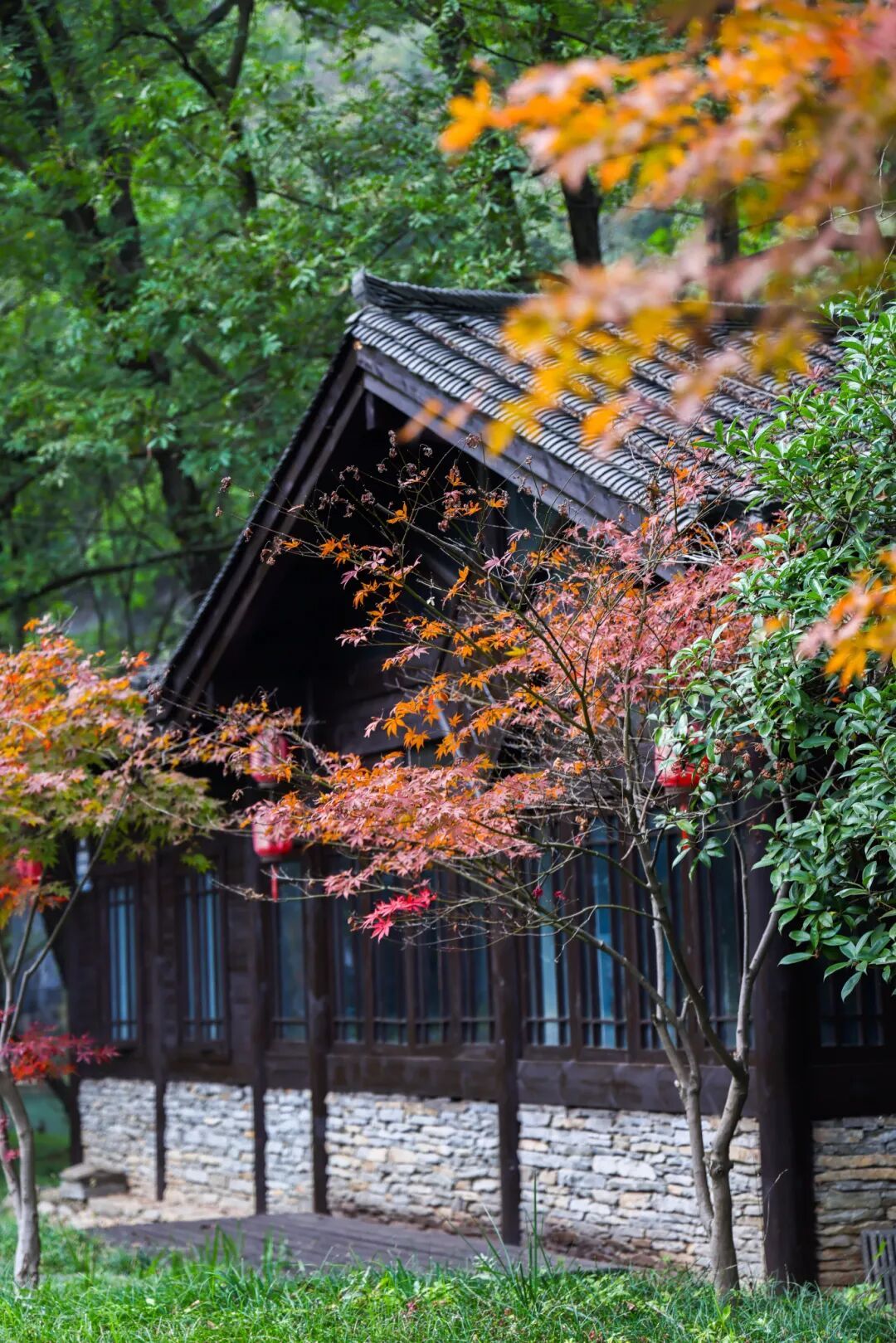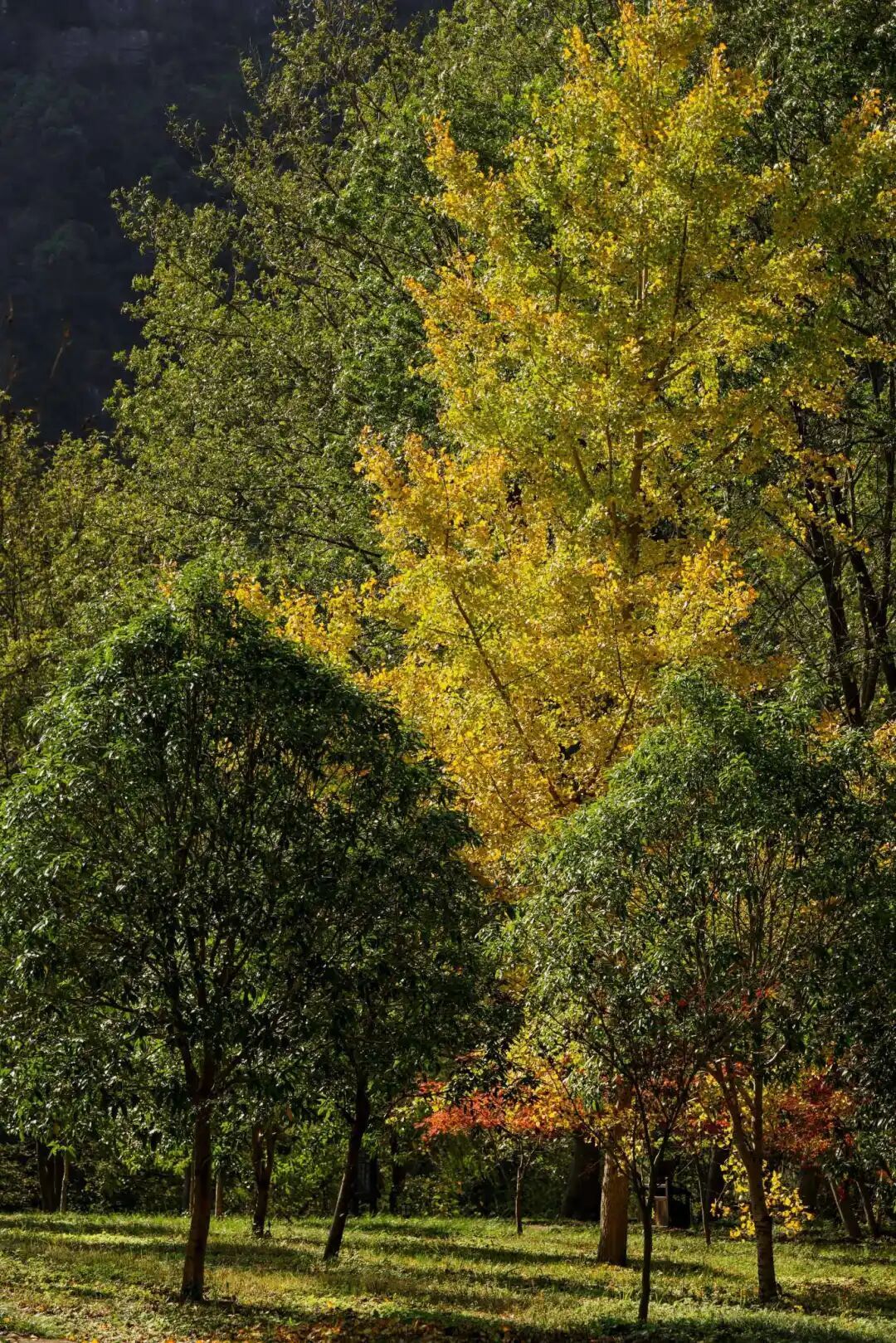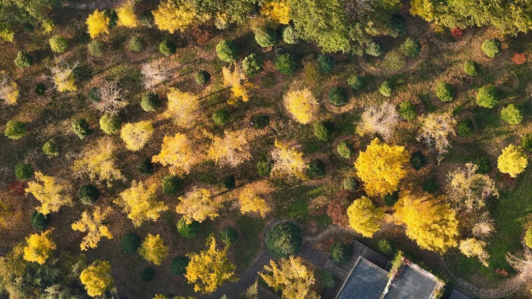 银杏、枫树点缀其间