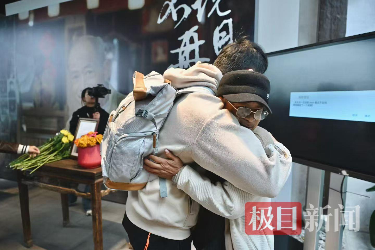 人们和阿虎献花后拥抱(受访者供图)