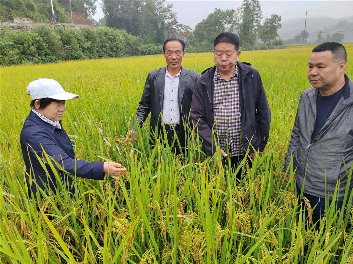 付艳华(左一)在宜都市枝城镇松木坪镇袁家套村指导水稻种植。(湖北日报全媒记者 张泽牧 摄)