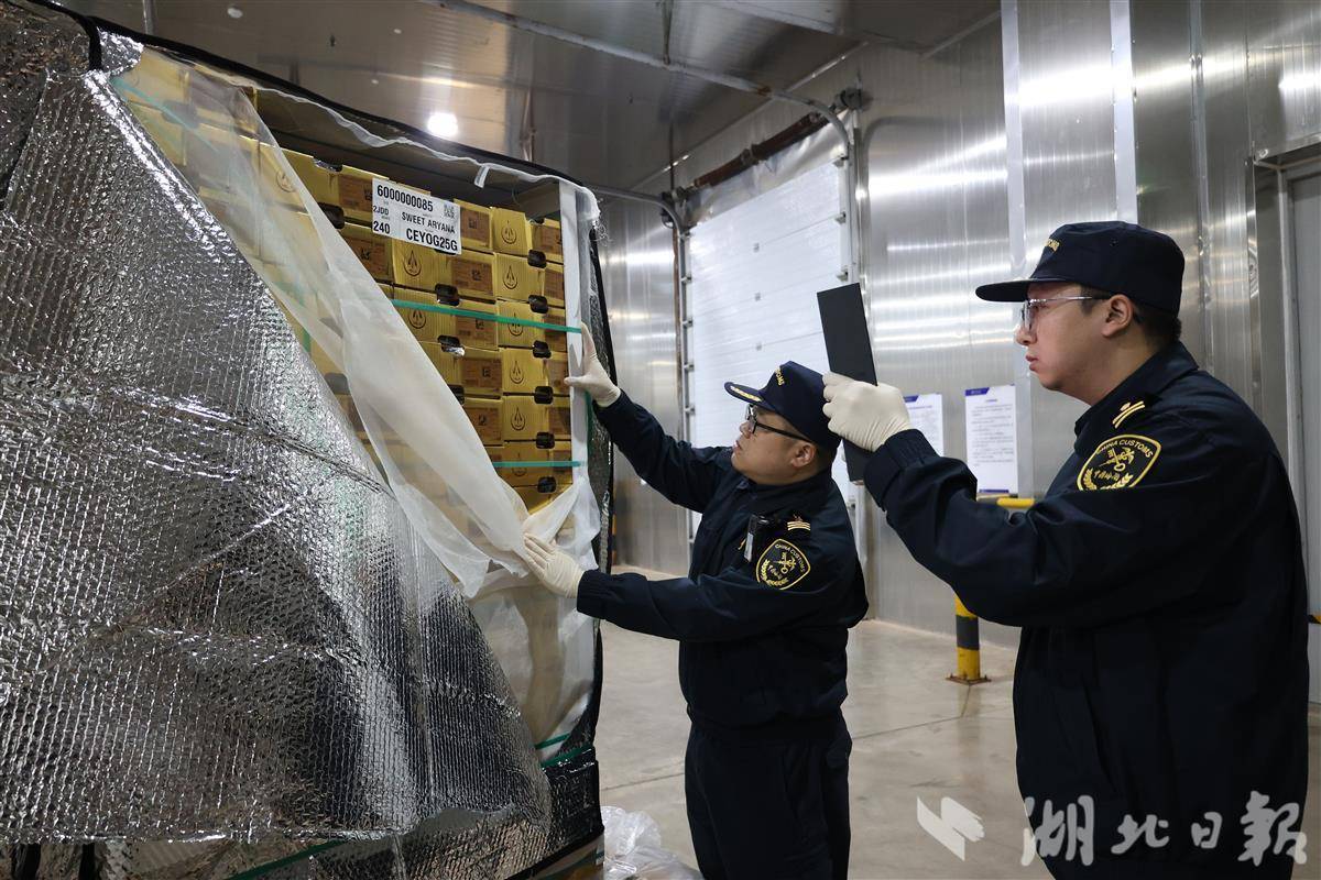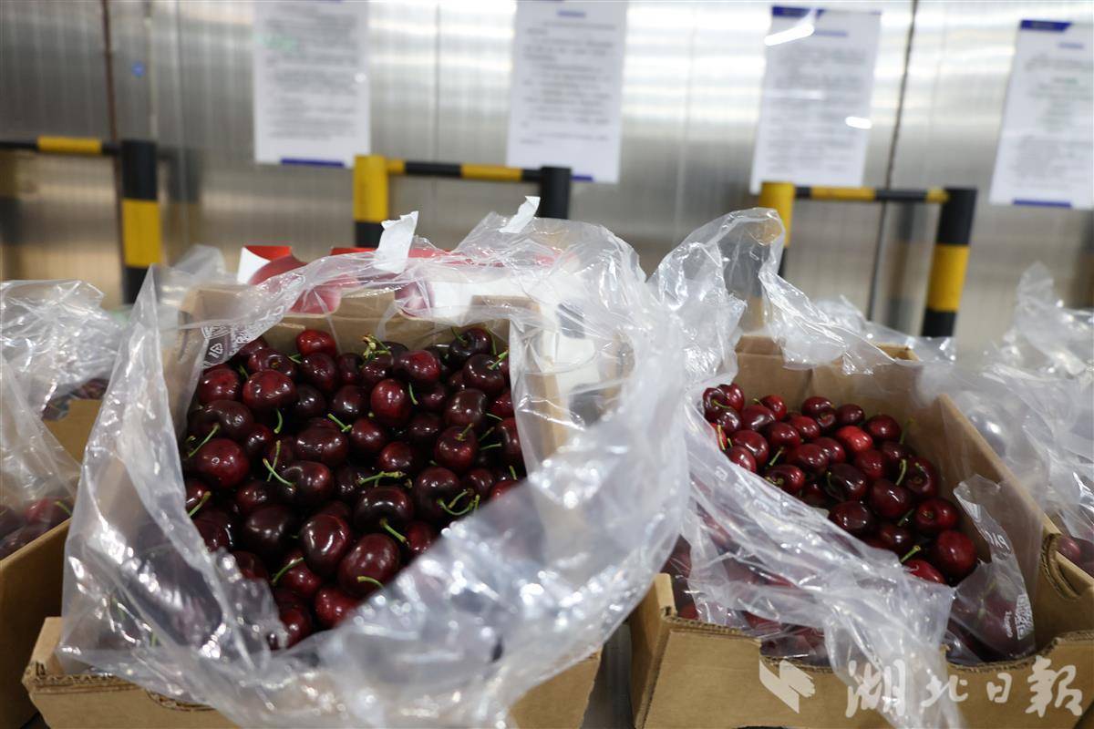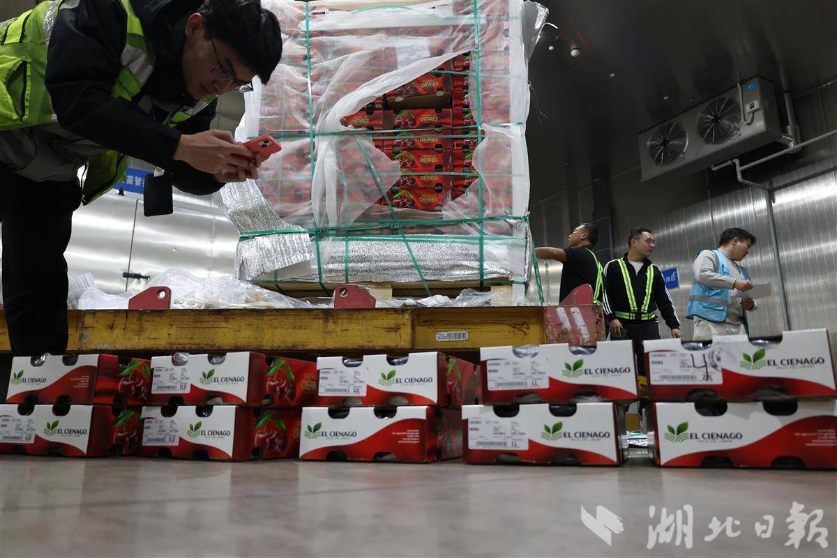 花湖机场迎来今冬首票智利车厘子,鄂州海关迅速查验放行。湖北日报全媒记者周鹏摄