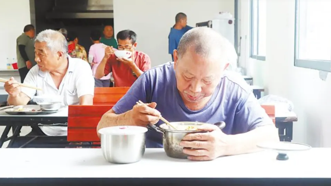 彭市镇前河村幸福食堂里,老人们正在用餐。
