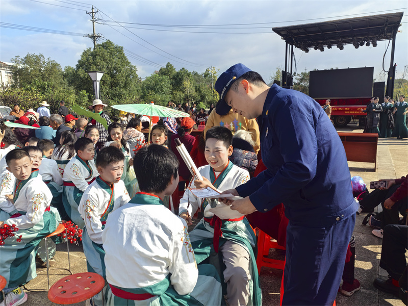 活动现场,消防宣传人员在人员密集的村委会活动现场设置了消防安全咨询台,通过摆放知识展板、发放宣传知识手册等方式吸引过往群众驻足参与。针对秋冬季节天干物燥、火灾易发多发的特点,宣传人员结合农村火灾防控实际,用通俗易懂的方言向群众详细讲解了家庭用火用电用气安全规范、电动自行车停放充电注意事项等知识要点,也演示讲解了灭火器“一提、二拔、三握、四压”的操作技巧和初期火灾扑救方法。