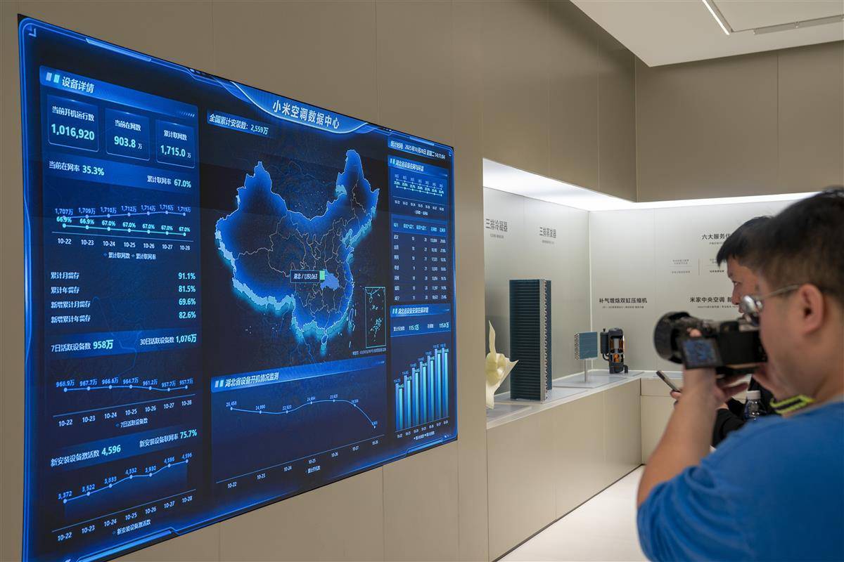 小米智能家电工厂展厅内的生产数据大屏幕。