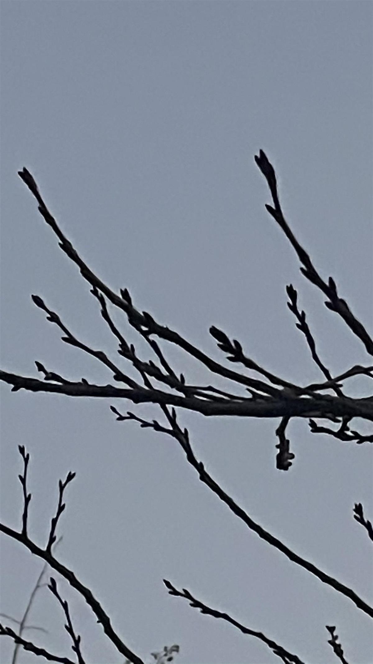 关山荷兰风情园一棵樱花树有花苞冒出的迹象