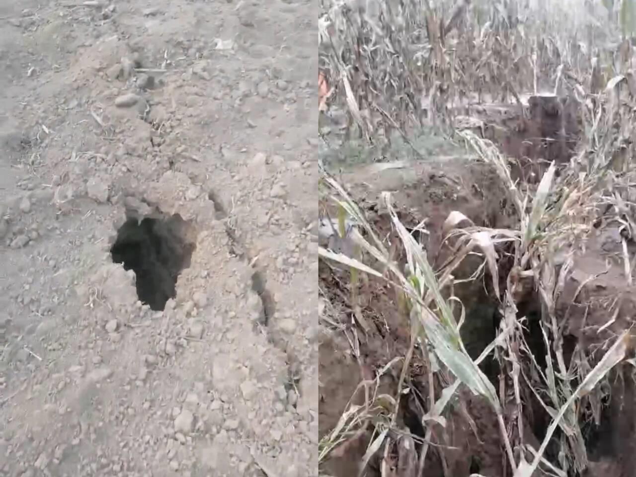 垮塌前玉米地的裂缝(受访者供图)