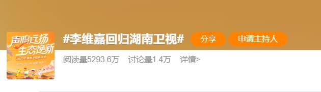 10月28日,湖南卫视官方在“2025芒果秋季招商大会”发布欢迎动态,配文“好久不见,欢迎回家”,正式确认主持人李维嘉回归湖南卫视。