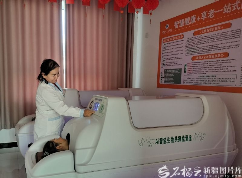 在康养区,引入的机器人理疗师、AI智能生物共振能量舱等智能理疗设备,成为老人的“新宠”。居民艾斯卡尔·依布拉音患有慢性关节痛,如今不再每月奔波去医院,“走几步路就能去做理疗,疼痛明显减轻。”这里日均接待老人20余人次,成为社区医防融合的“健康驿站”。