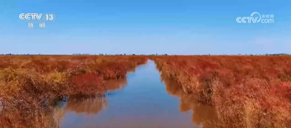 金秋时节,在江苏连云港临洪河口,沿海滩涂湿地披上了多彩的秋装。连片的碱蓬草在秋风中次第变红,层层叠叠。阳光洒下,一株株碱蓬草晶莹闪亮,红得耀眼。微风拂过,枝叶摇曳生姿,在碧海蓝天的映衬下,美不胜收。