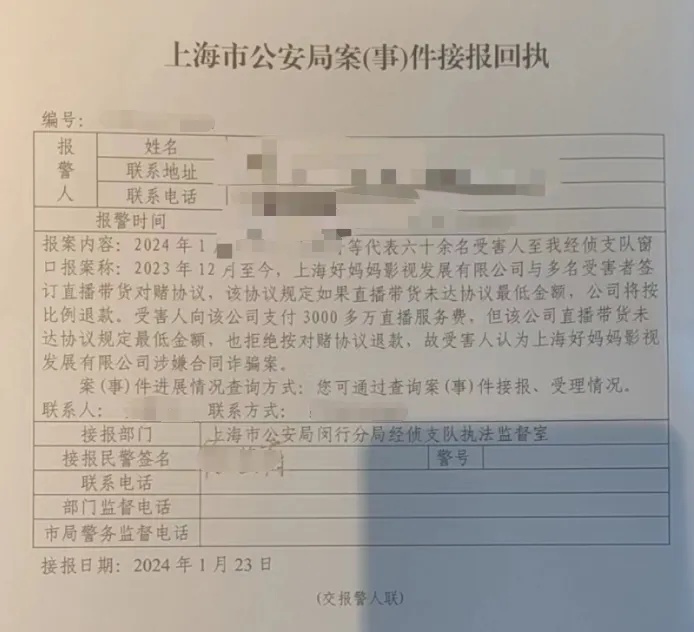 今年3月,组织这场“带货”的上海闵行好妈妈影视发展有限公司涉嫌合同诈骗一事已被立案,另有6个人被刑事拘留。其中三名主要负责人后来被闵行区人民检察院以合同诈骗罪提起了公诉。