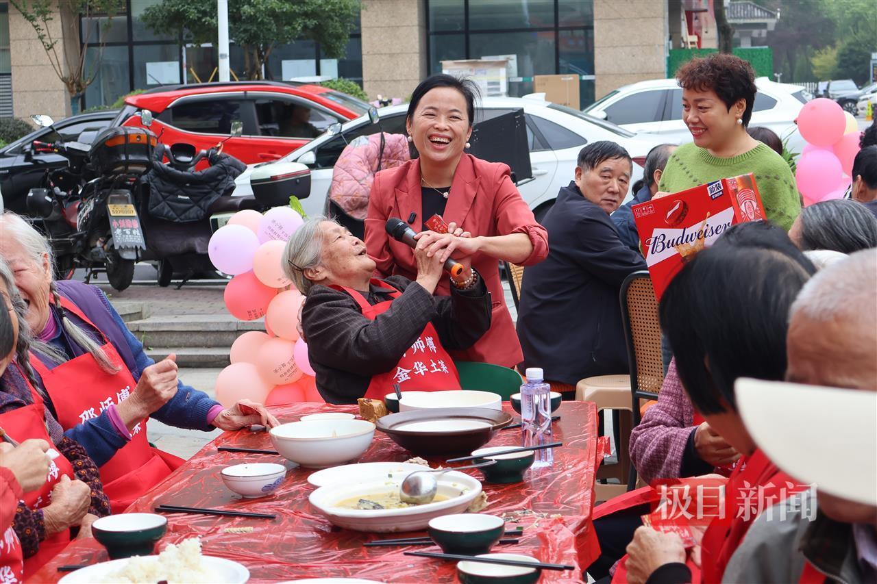 徐慧英告诉极目新闻记者,重阳节前,她会给到店的老人们发券,大部分老人她都认识,领到券的老人会来参加宴席。今年吃席的106位老人都是60岁以上的,年龄最大的有90岁。她还没有计算办宴席的成本,以后只要店还在,她会一直办下去。