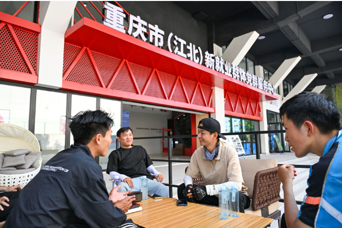 网约配送员在重庆市江北区新就业群体党群服务中心休息(2025年5月20日摄)。新华社记者 王全超 摄