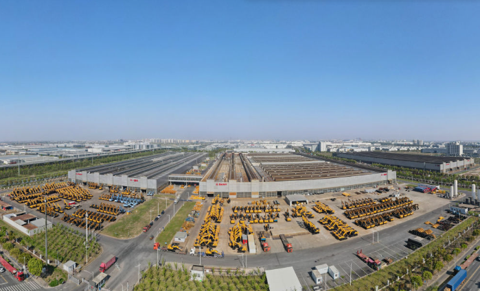 空中俯瞰上海三一重机股份有限公司外景(无人机全景照片,2025年4月15日摄)。新华社记者 方喆 摄