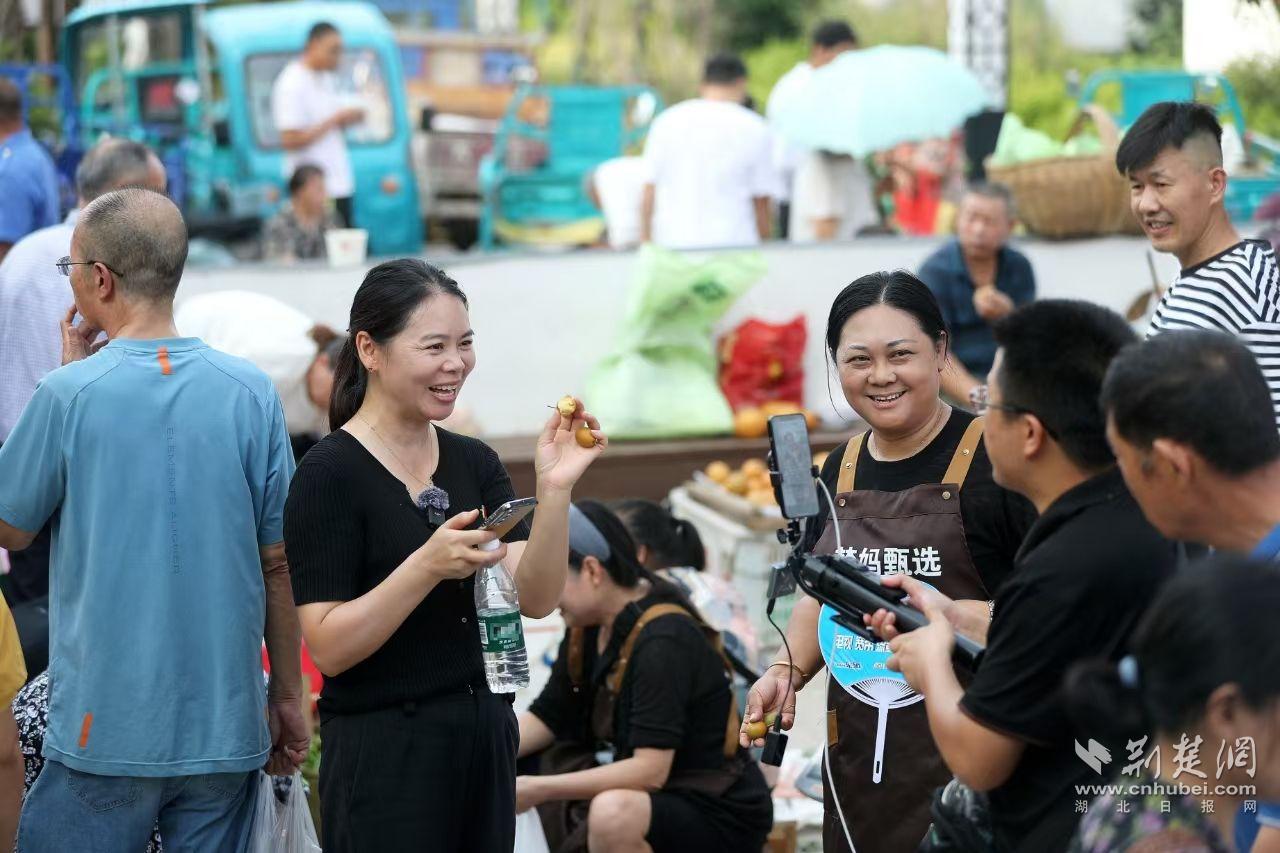 构建“线下赶集+云端卖货”联动模式,每周六上午在八角村固定开展线下赶大集活动,线上同步通过抖音、微信视频号等平台直播“云赶集”,村书记化身“带货员”,现场推介农产品、讲解种植流程、分享田间趣事并解答观众提问,推动城乡居民云端互动交流,架起城乡融合“连心桥”,截至目前,已开展赶集活动16场次,线下参与人次达到6万人,线上浏览量突破800万。