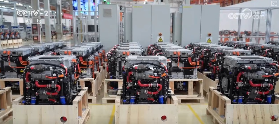 这里是江苏苏州一条氢燃料电池系统的生产线,这条生产线在四季度进入到了集中交付阶段,将交付900台氢燃料电池系统。它类似于重卡的发动机,像这样一台120千瓦功率的轻燃料电池系统的市场售价在30万元左右,未来将用于重卡的物流运输等场景。