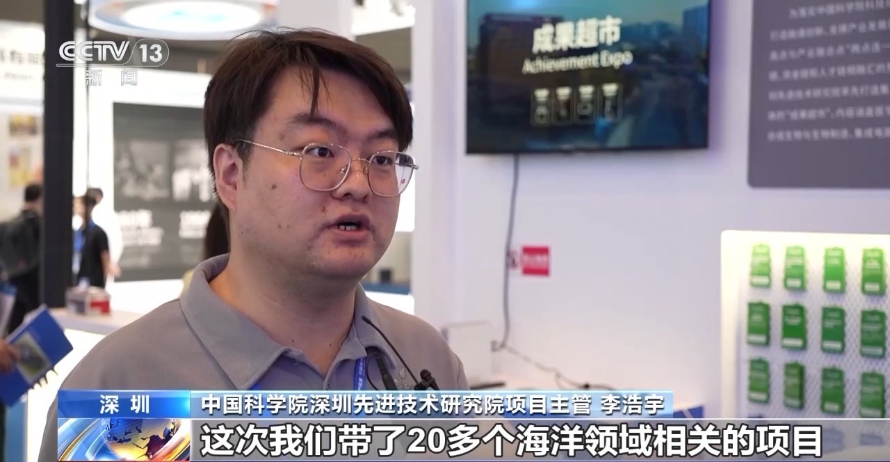 中国科学院深圳先进技术研究院项目主管 李浩宇:这次我们带了20多个海洋领域相关的项目,在深海资源勘探相关的一些指标和仪器的采集,地震环境的数据检测等等方面,都是有一些比较前沿的科学研究发现,和与企业的合作项目。