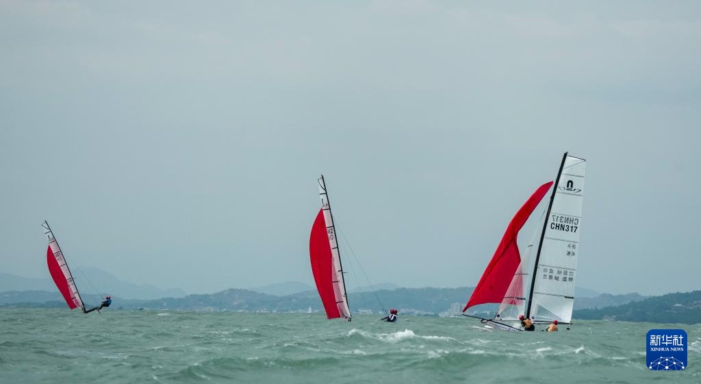 当日,第十五届全运会帆船项目第二阶段比赛继续在广东省汕尾市进行。