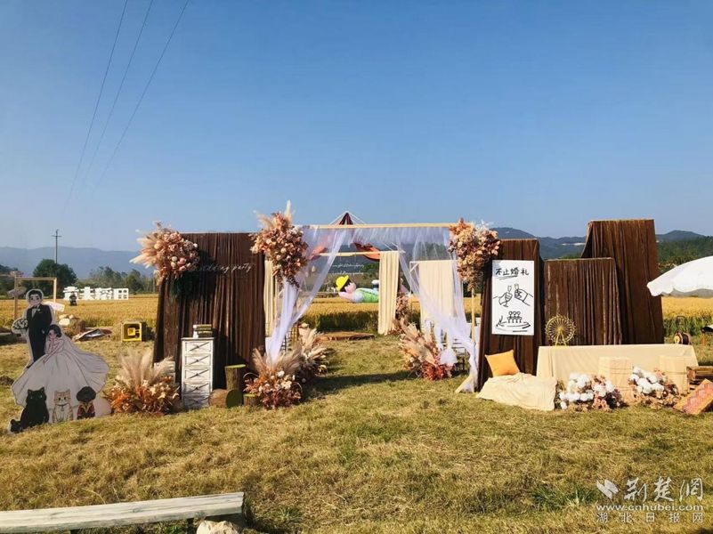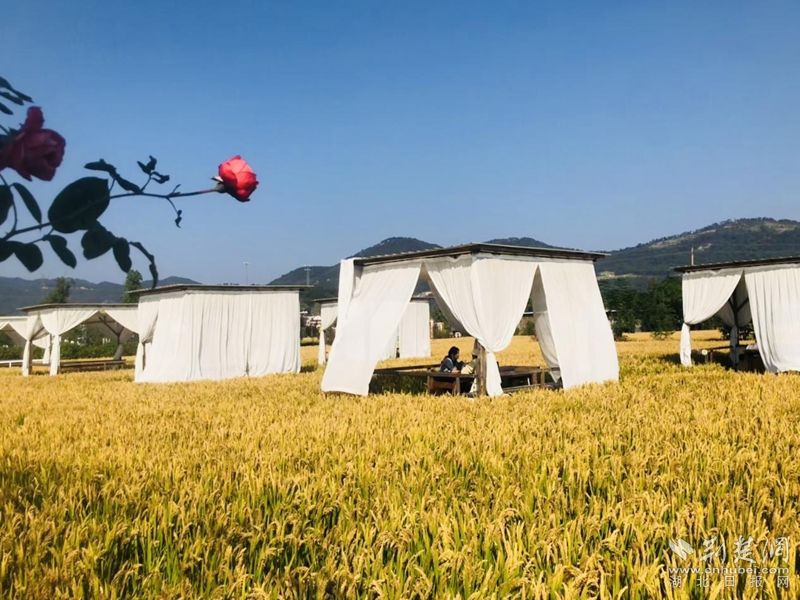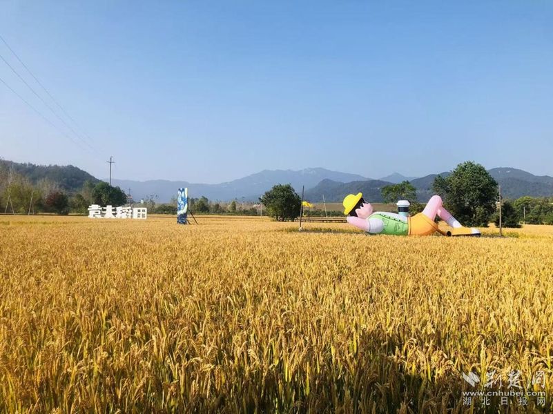 荆楚网(湖北日报网)讯(通讯员 吴宇)11月26日,时值周末,步入位于黄梅县大河镇的袁夫稻田,连片金黄稻田间,艺术元素与自然景观相映成趣。