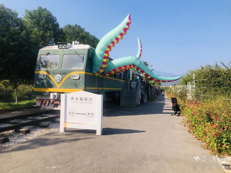 “带着孩子从黄州特意赶来,一进稻田就被满眼金黄和艺术装置吸引了!”正在给孩子和稻草人合影的游客李女士笑着说,“孩子亲手扎了小稻草人,还在复古火车旁拍了好多照片,这种亲近自然又有乐趣的体验,比逛城市公园有意思多了。”